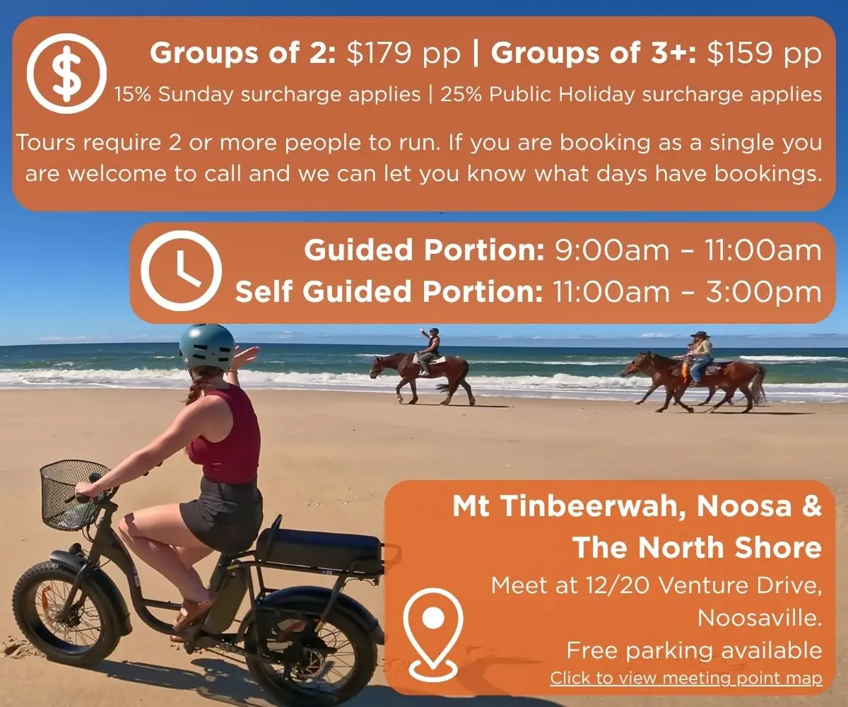 The beauty of Noosa is that everyone enjoys it differently. Some may want to ride long coastal trails, others might prefer to relax by the river, swim at Noosa Main Beach, explore the wilderness of the North Shore, or linger over coffee at a beachfront café. A self-guided afternoon allows you to enjoy these iconic areas on your own terms — without the structure of a group — giving you the flexibility to create your ideal experience.