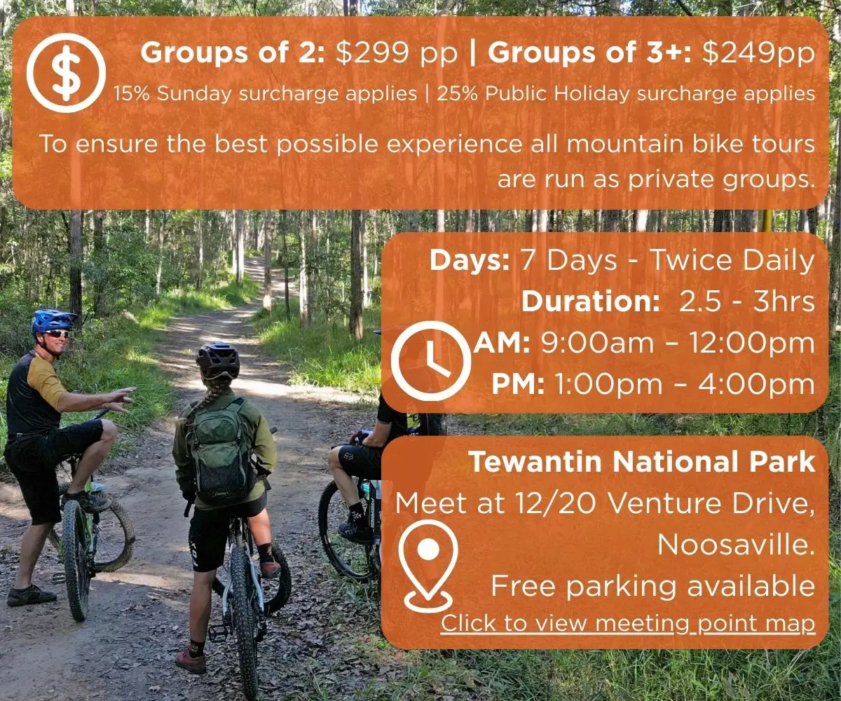 Our Noosa Electric Mountain Bike Tour is designed for confident riders ready to explore at a relaxed but active pace. Here’s what to expect: